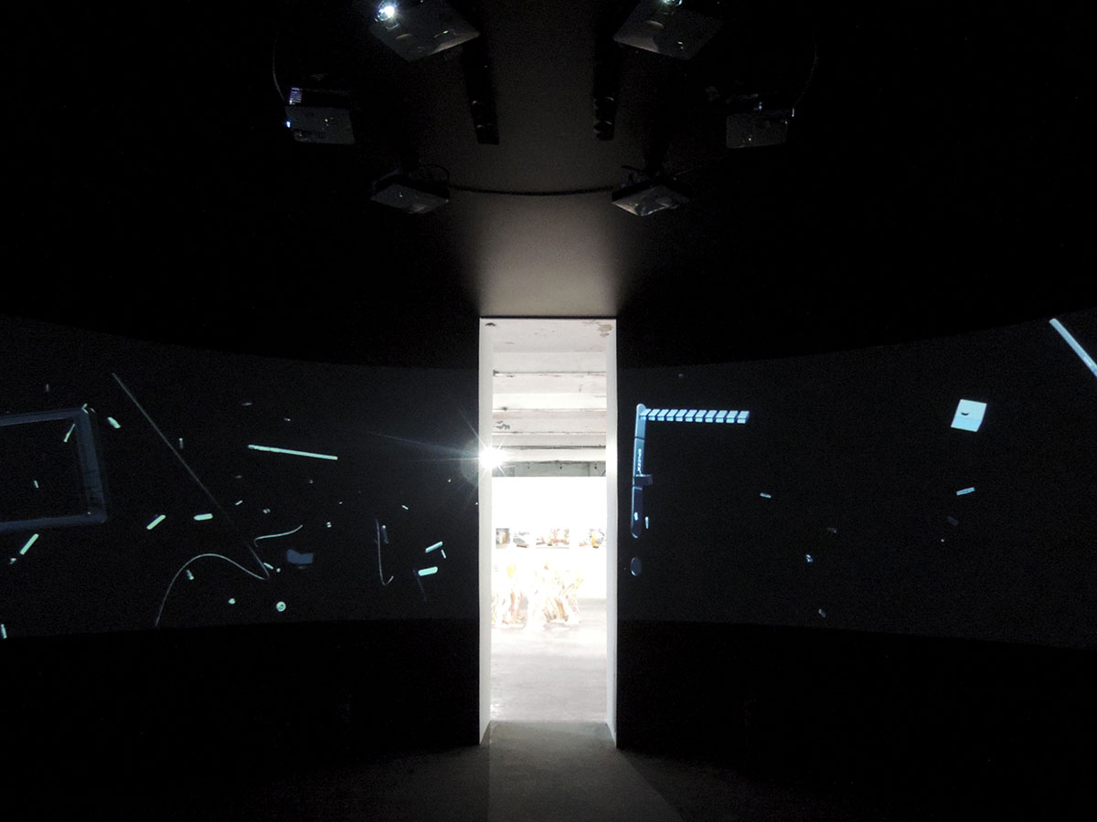 TERATEAR is an immersive video installation featuring a 360-degree digitally animated panorama. It was first exhibited in an enclosed custom-built space in the centre of the Trekhgornaya Manufaktura in Moscow, screened from six projectors onto a cylindrical structure measuring 19 meters in length. The work also has a surround sound component, further augmenting the enveloping sensory experience.